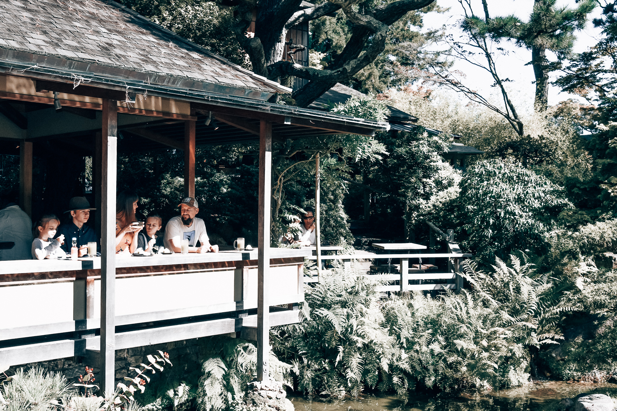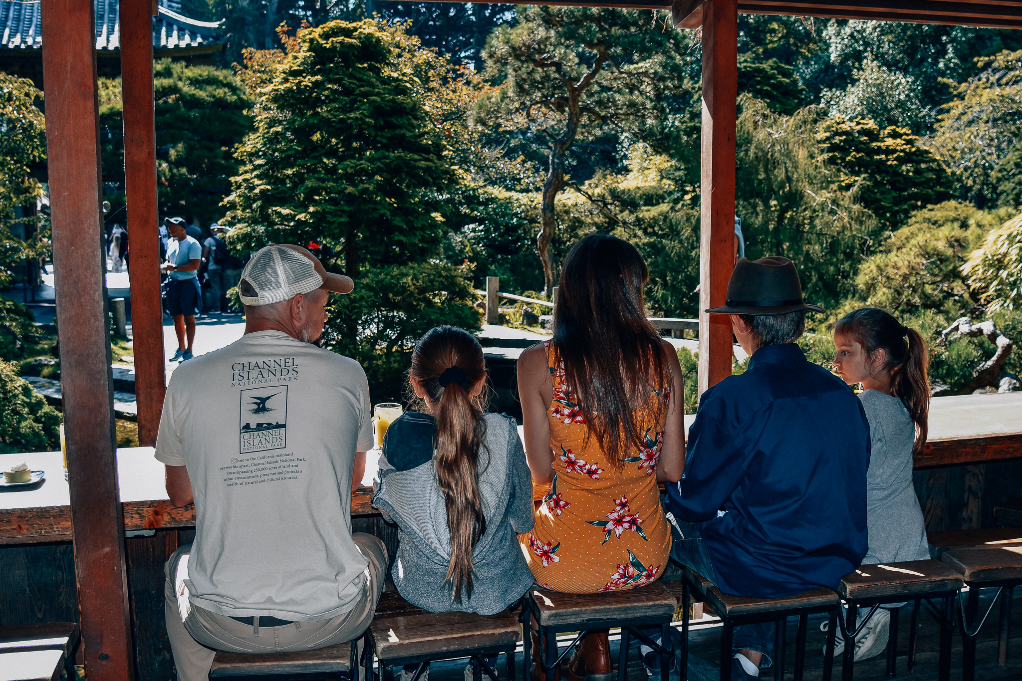 There is also what is known as the Tea House and here you can find tea and a selection of Japanese desserts. My daughters had Green Tea Cheesecake, while my husband had edamame, and Peter had Dorayaki. Of the 6 different flavors of tea I picked matcha. It was a way to experience the tea garden. I mean what is a tea garden without some tea?